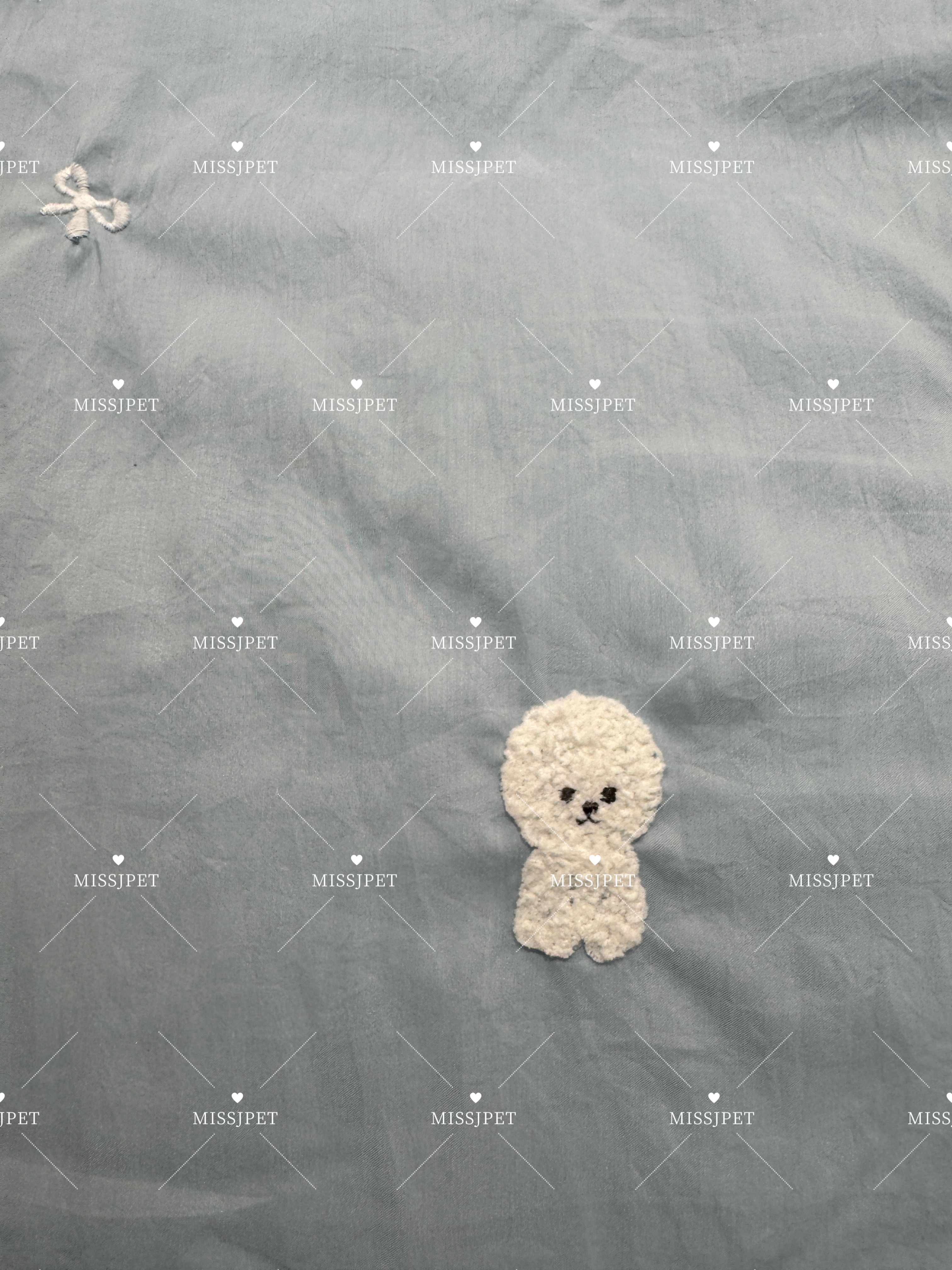 棉被上簡約可愛的比熊犬,就像一團團蓬鬆的雲朵般,可愛療癒地陪伴入睡。