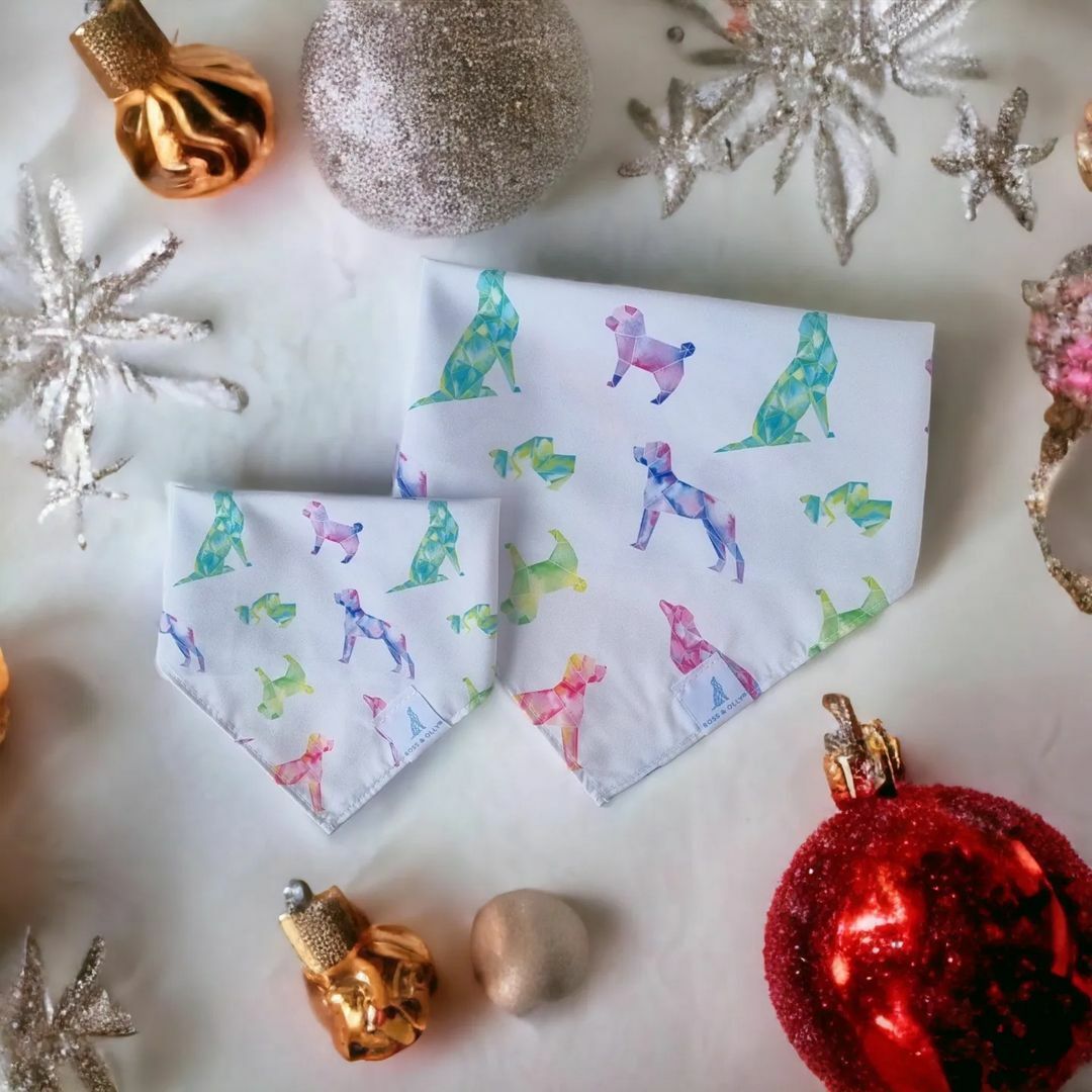 聖誕三角領巾有兩種尺寸:XS/S(適合脖圍至35cm)、M/L(適合脖圍至60cm),犬貓適用。