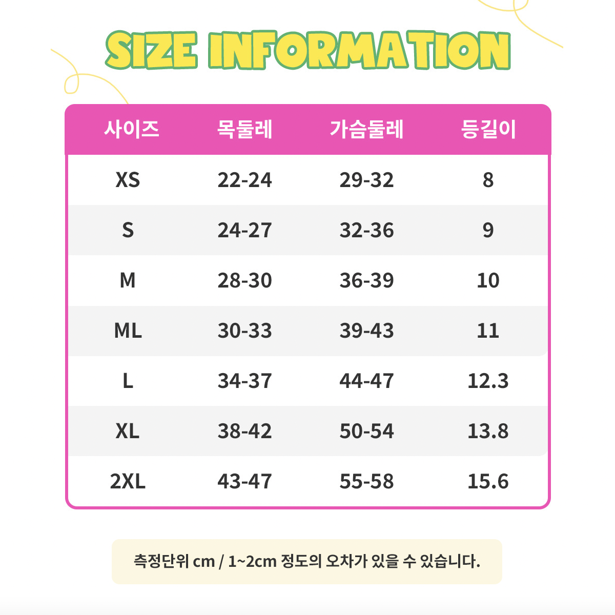 尺寸有XS、S、M、ML、L、XL、2XL七種選擇。