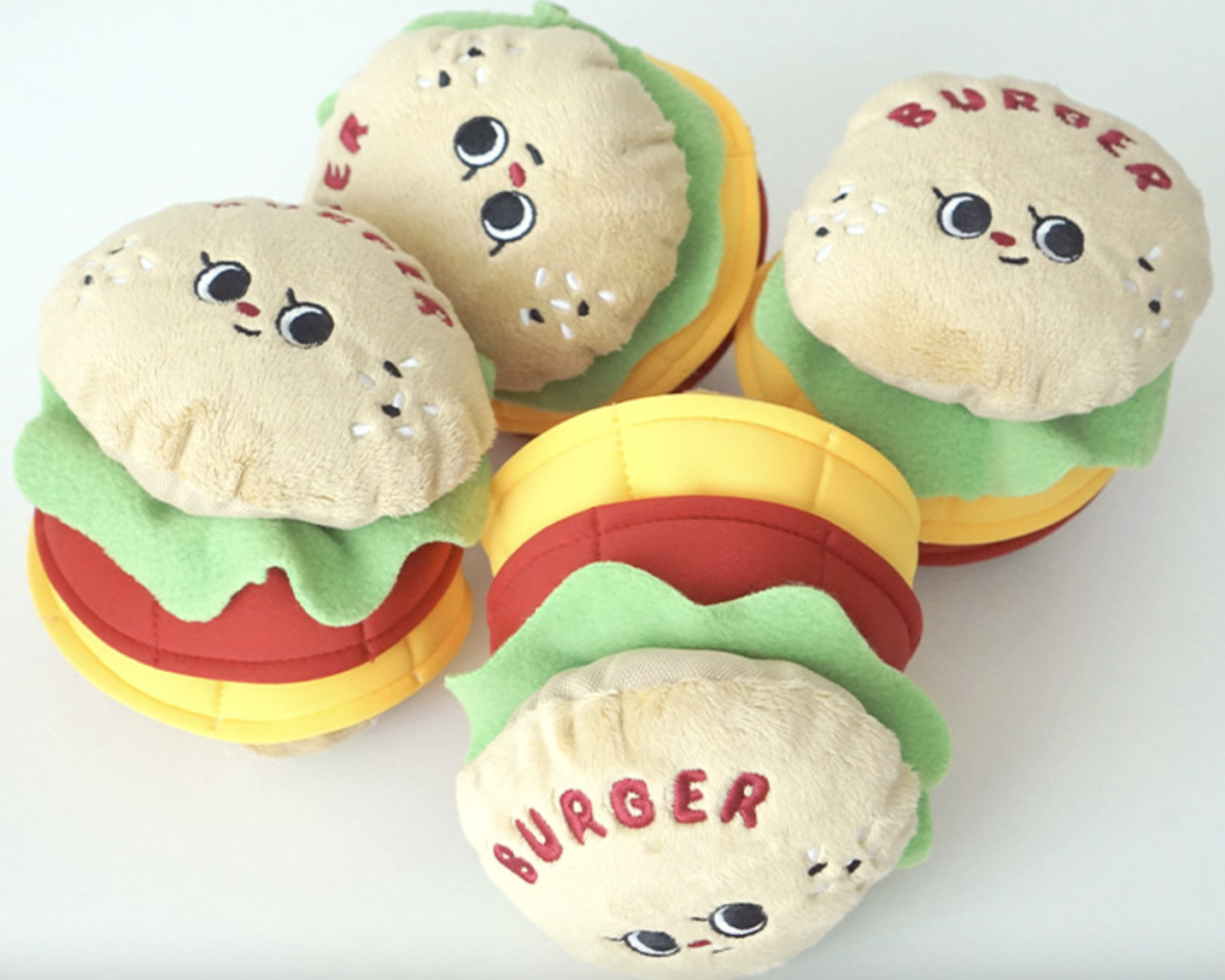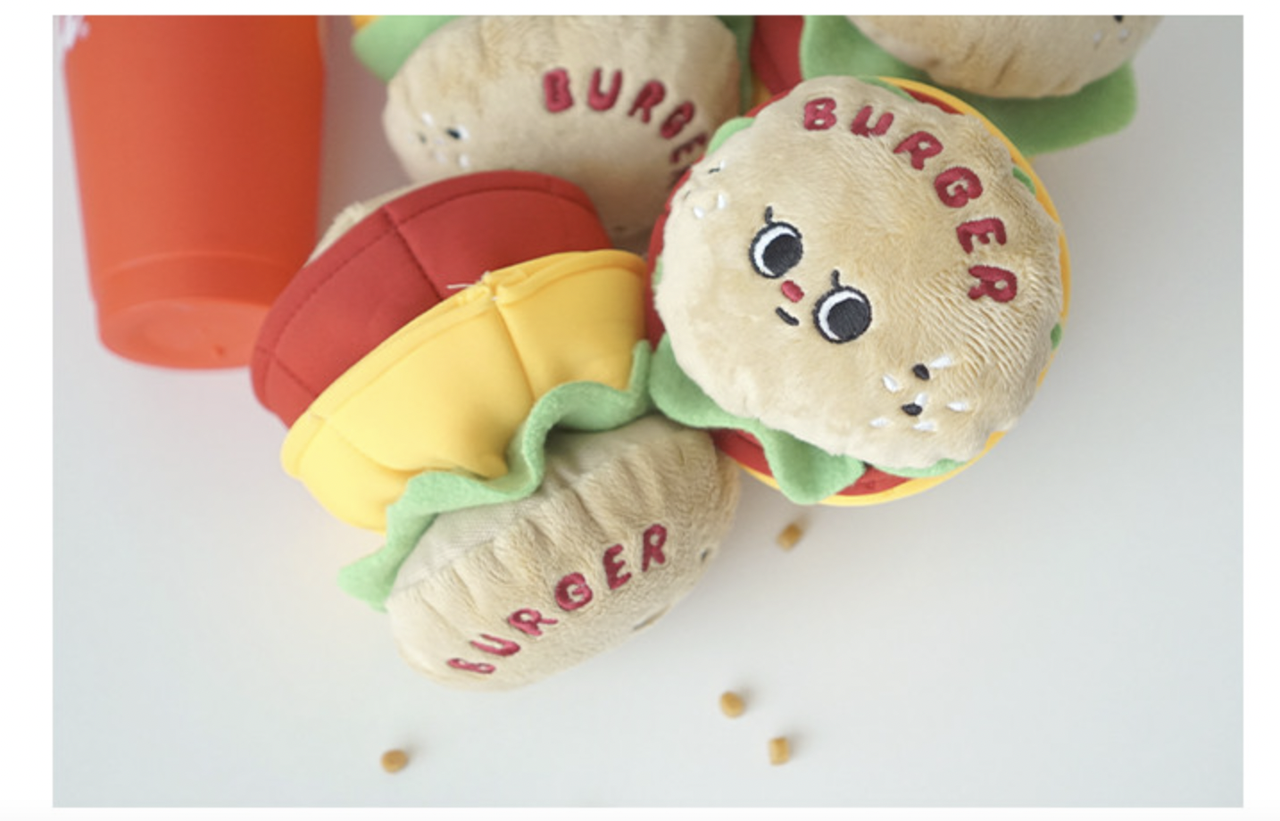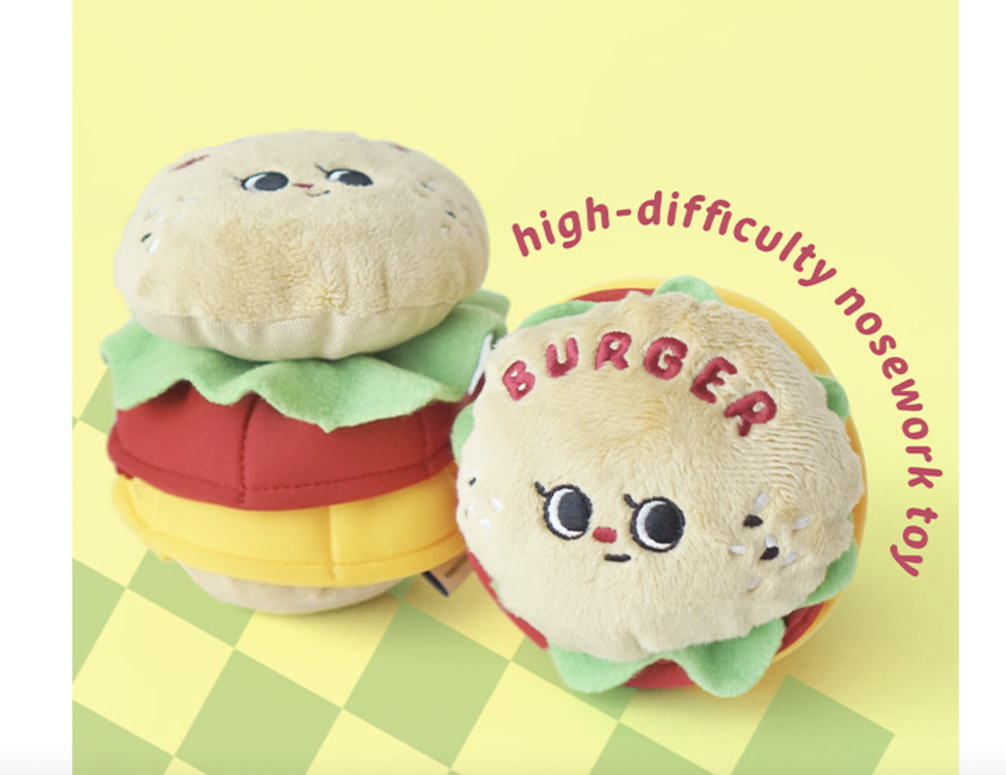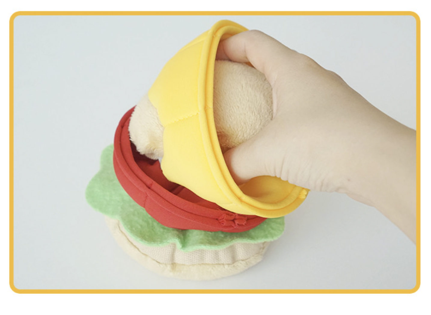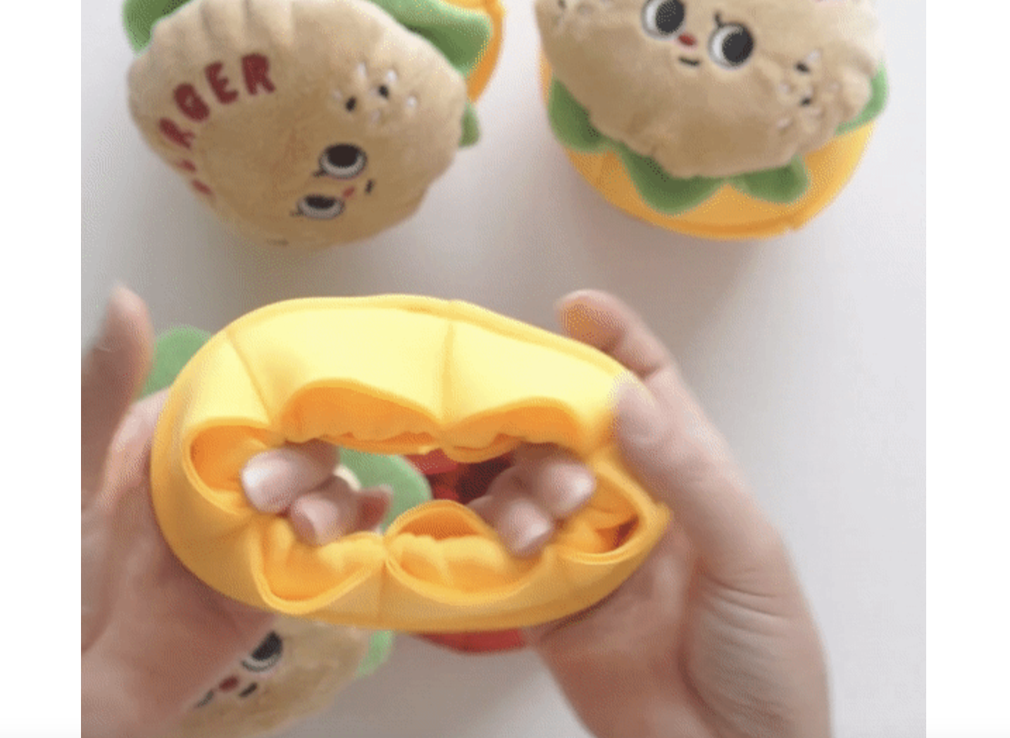 柔軟耐咬的漢堡,本體有多個藏食孔可以藏零食,給毛孩嗅聞遊玩增添樂趣。