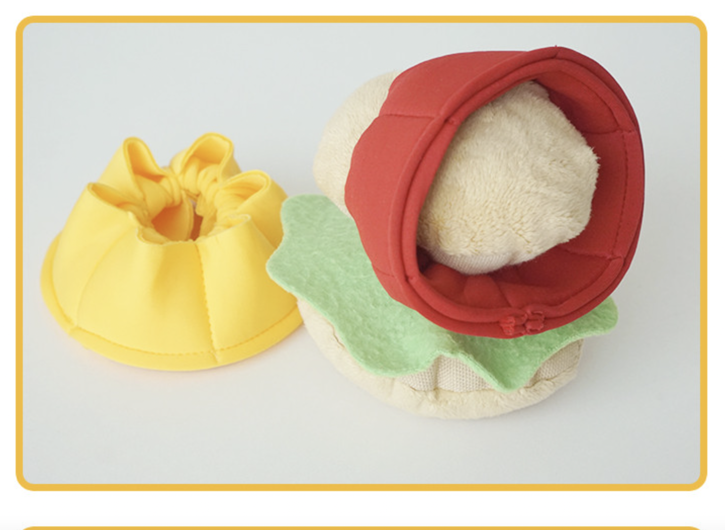 漢堡麵包使用柔軟細緻的牛津布料製成,無絨毛無刺激不易過敏。 使用高品質刺繡,即使長時間把玩也可維持玩具原本的樣子,