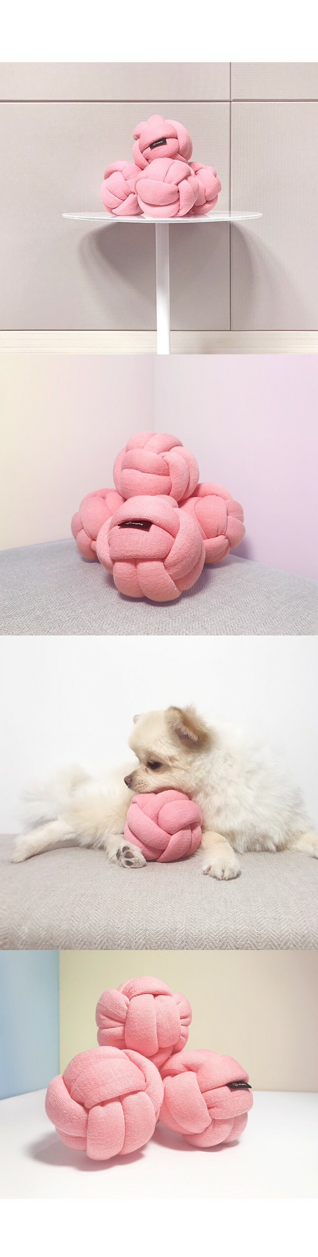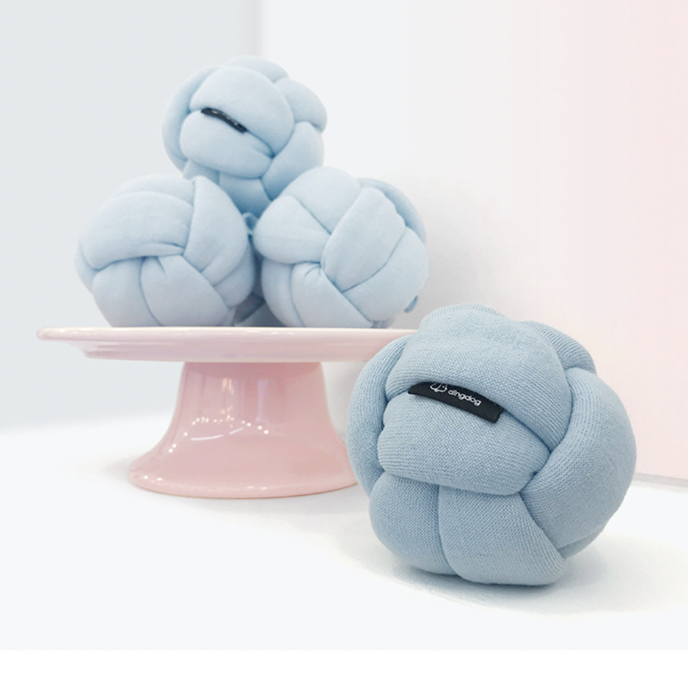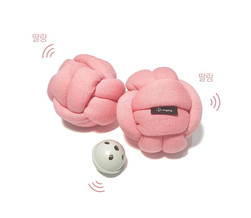 質地柔軟的結繩鈴鐺球,有粉、藍、米三色可以做選擇