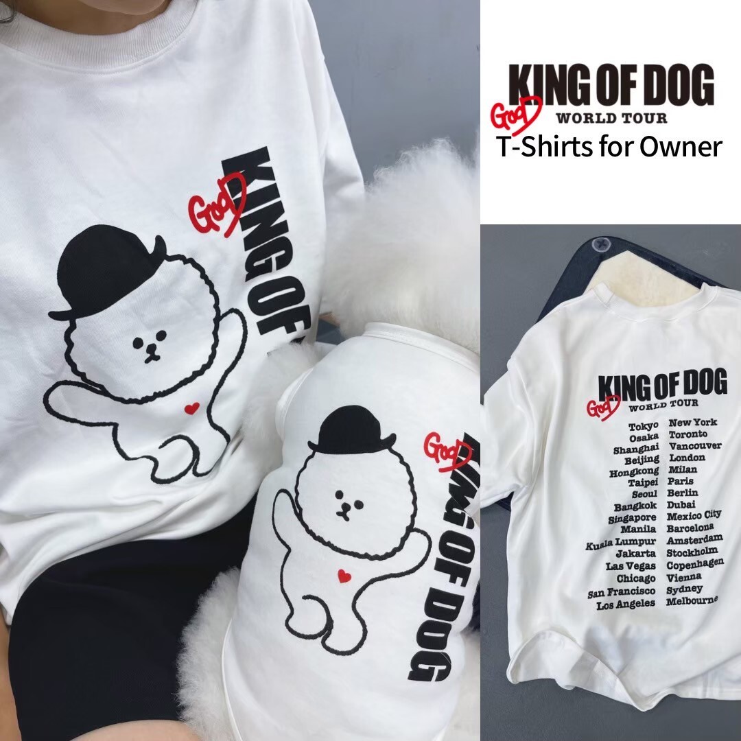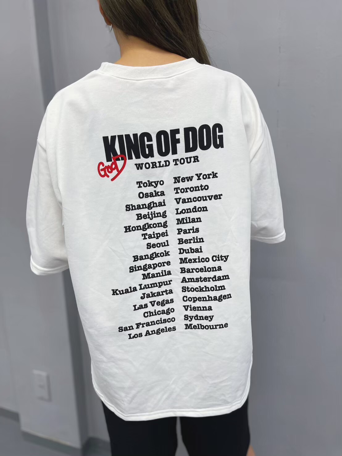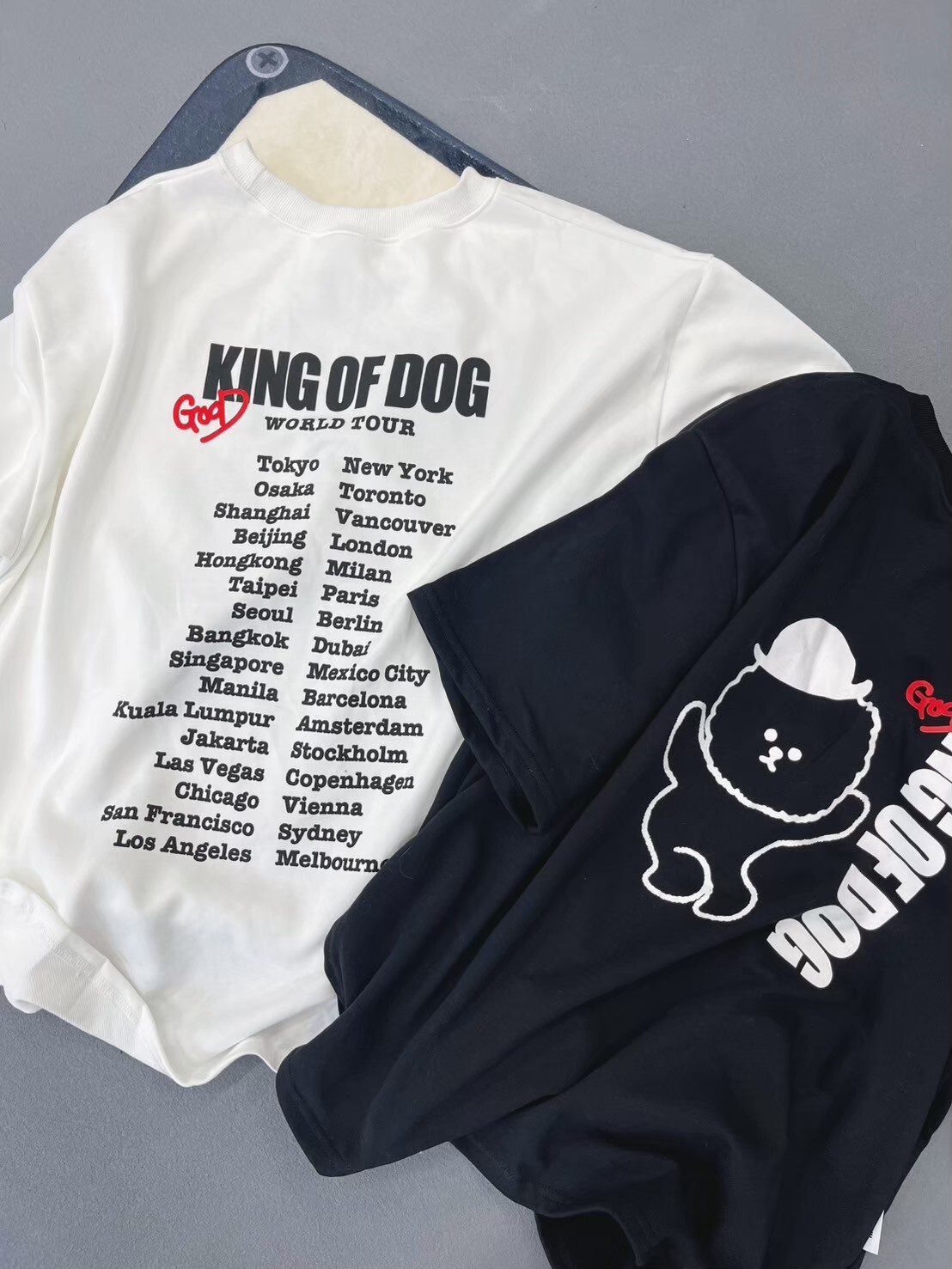 大人衣共有白色和黑色兩款顏色,正面是King Of Dog狗狗之王圖案,背面則是世界巡迴演出的城市名稱,設計富有巧思!
