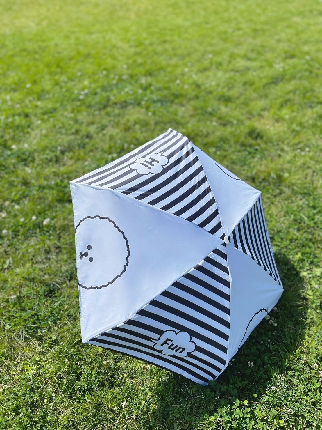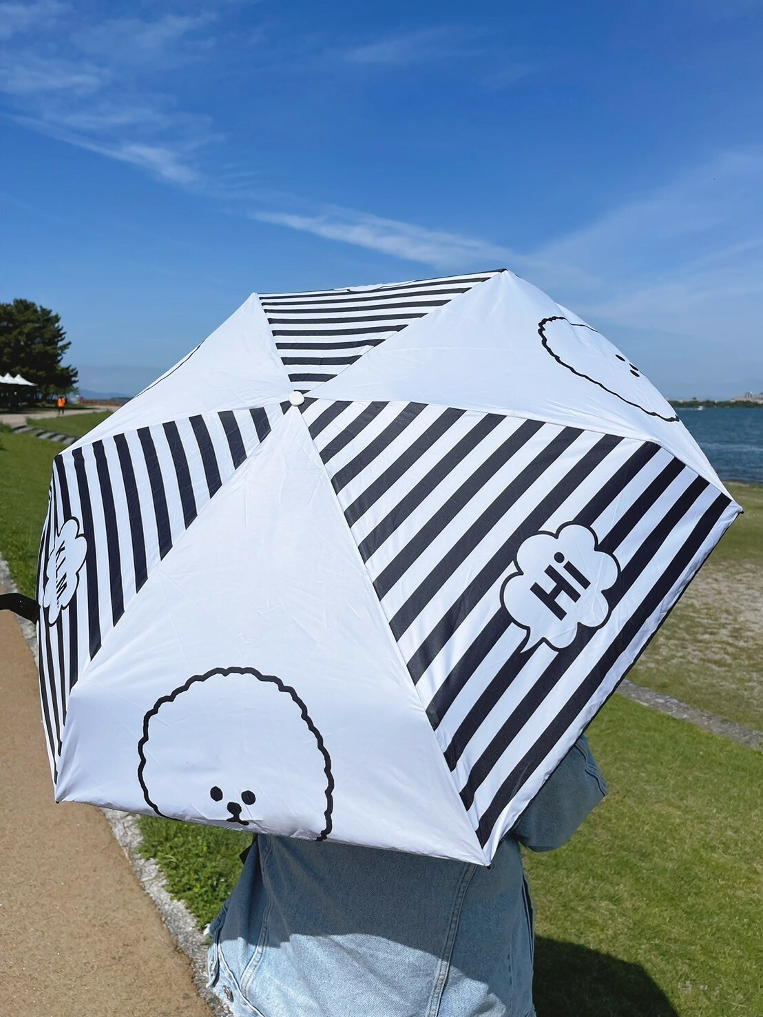 雨傘展開後,黑白線條和比熊圖案設計營造出時尚的氛圍♪
