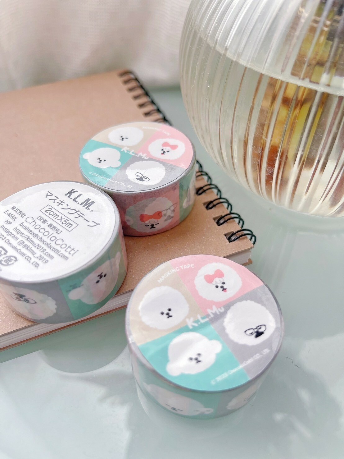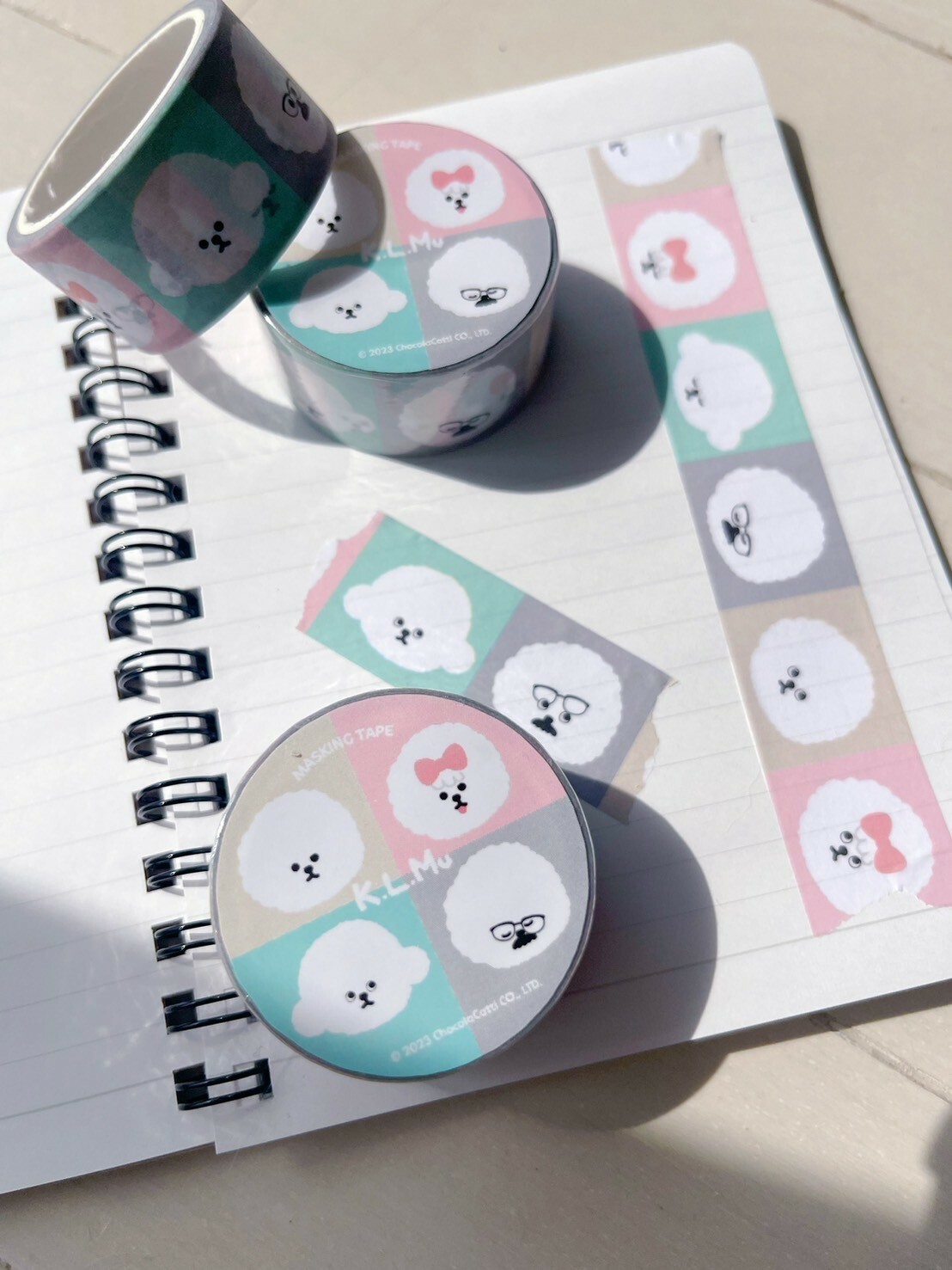 四色圓頭比熊、女版比熊、耳罩比熊和叔叔比熊造型圖案紙膠帶一次擁有,可以貼在記事本或任何地方裝飾增添可愛感。