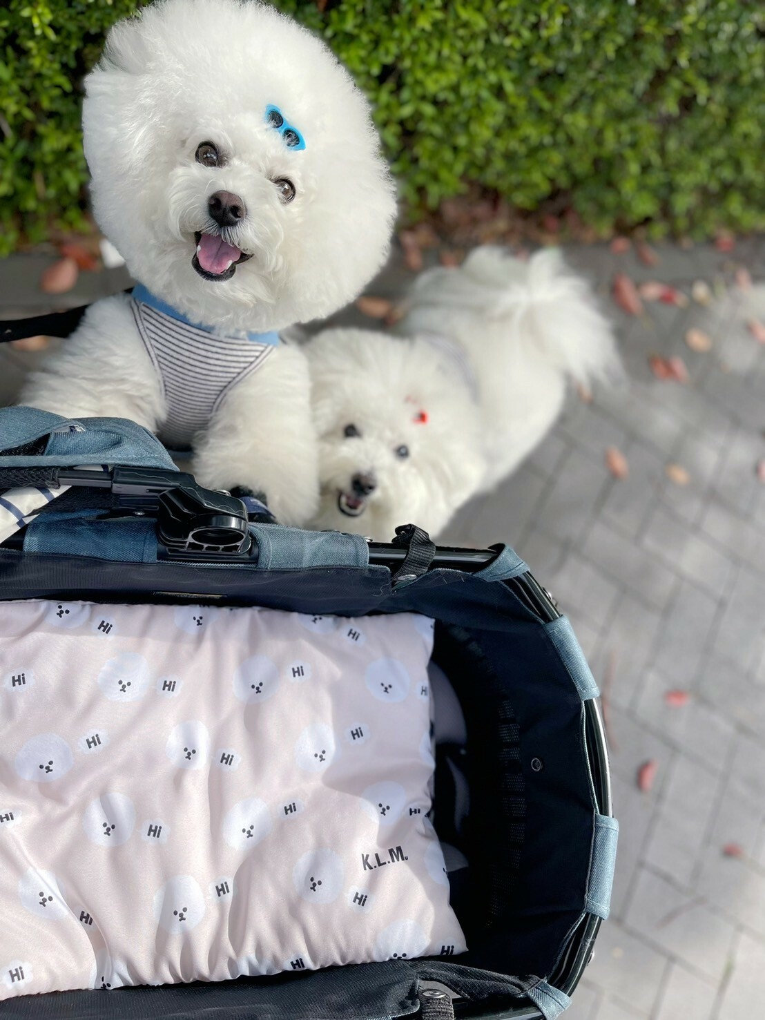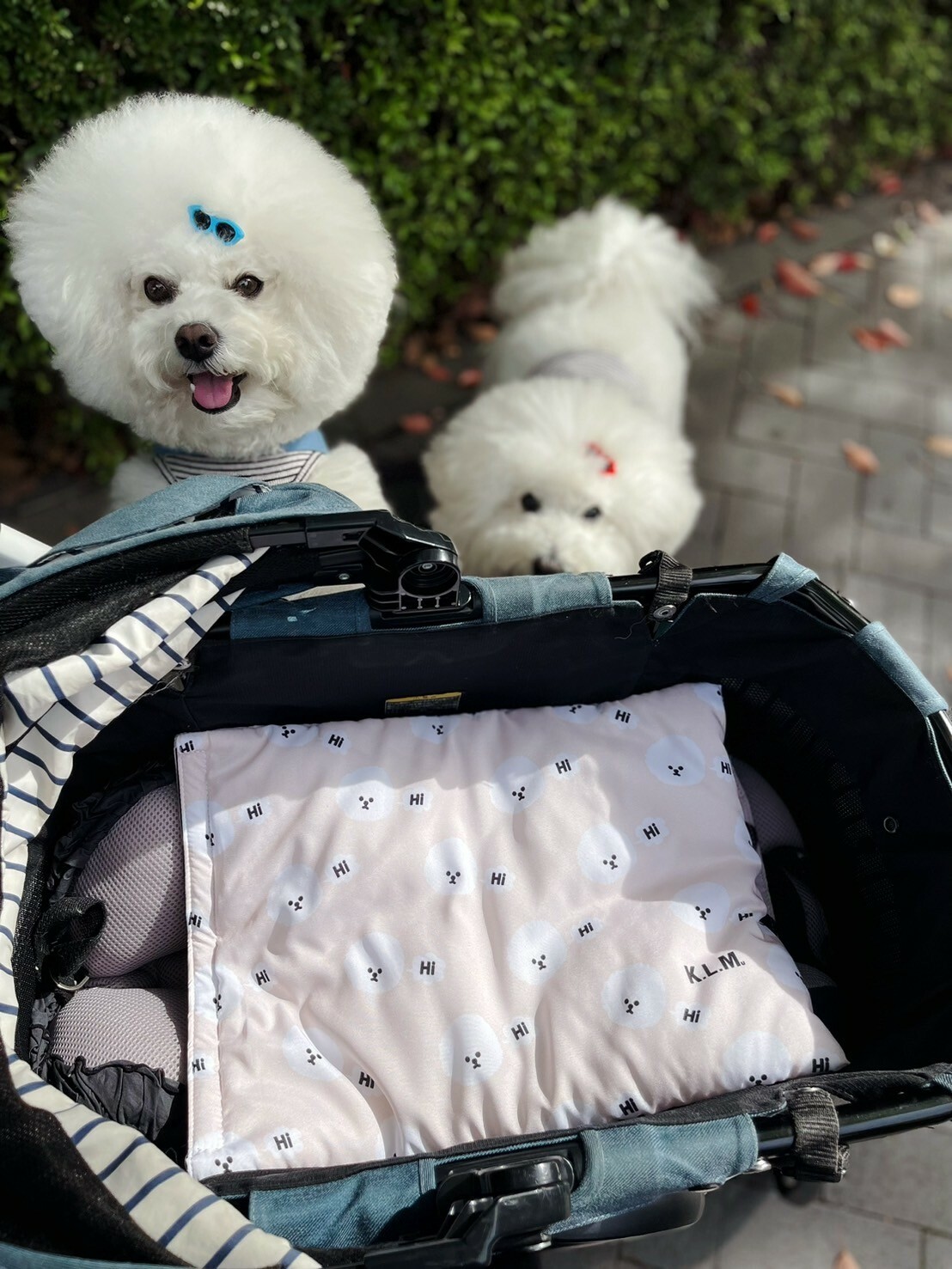 正面和反面印有Hi比熊的雙面可愛設計,裡面有棉花增加使用舒適度,內襯是使用了防水材質布料,即使放入保冷劑也不會讓墊子濕掉~