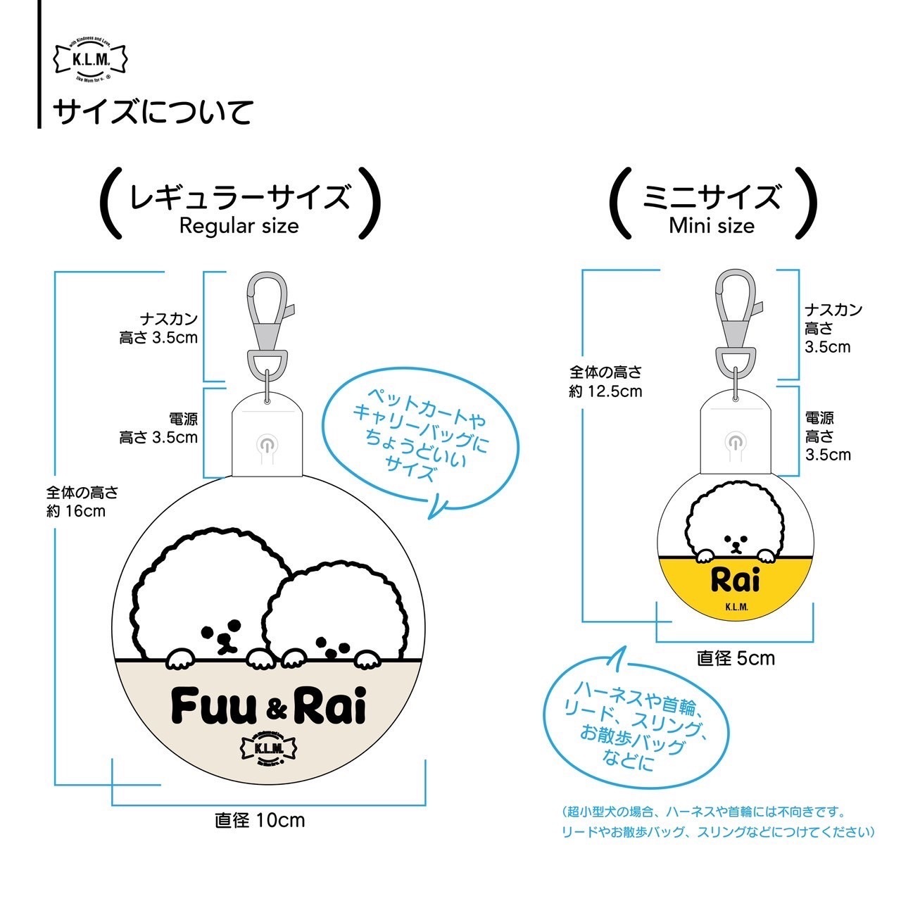 標準尺寸直徑為10公分,最多可印製四毛孩+名字,可以用作推車或包包上的吊牌或裝飾使用。