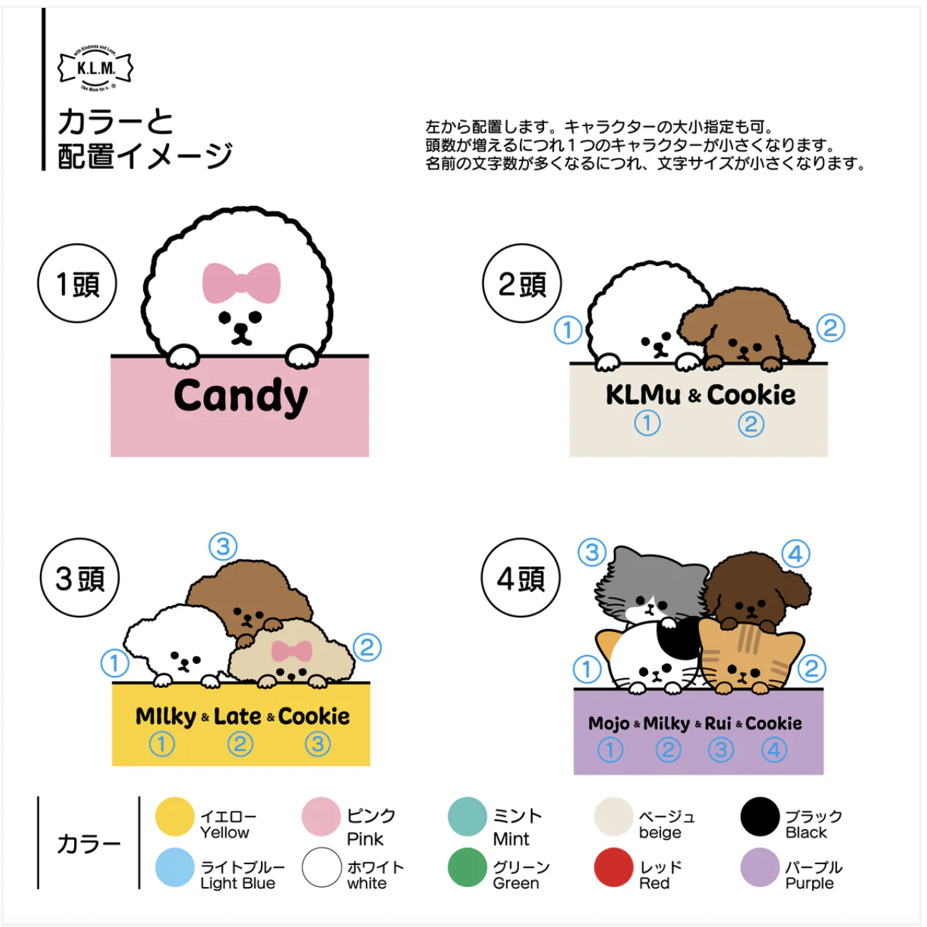 名字您可以選擇英文、日文平假名、片假名和漢字,請於下單時清楚備註毛孩圖案號碼及相對應姓名。