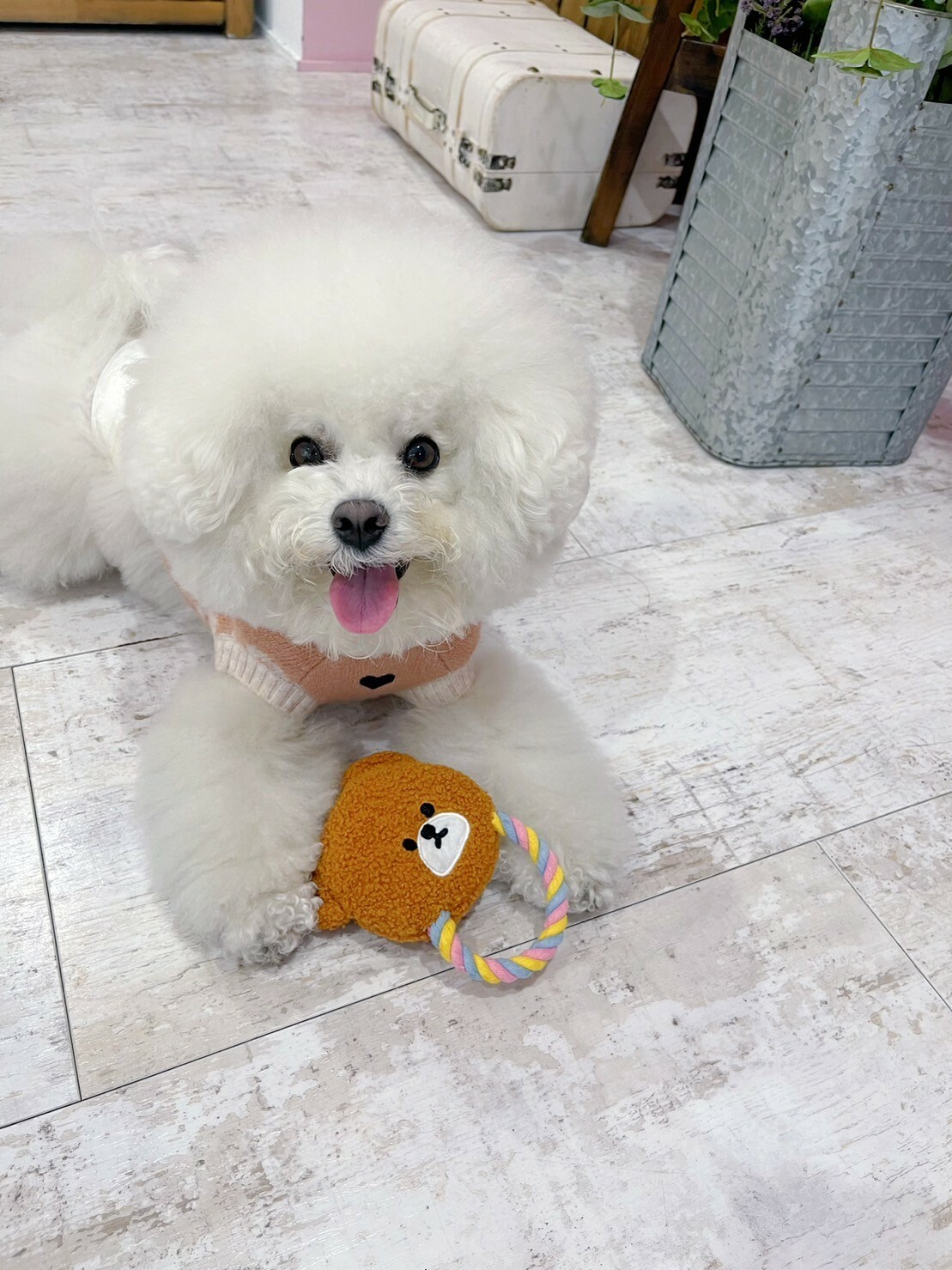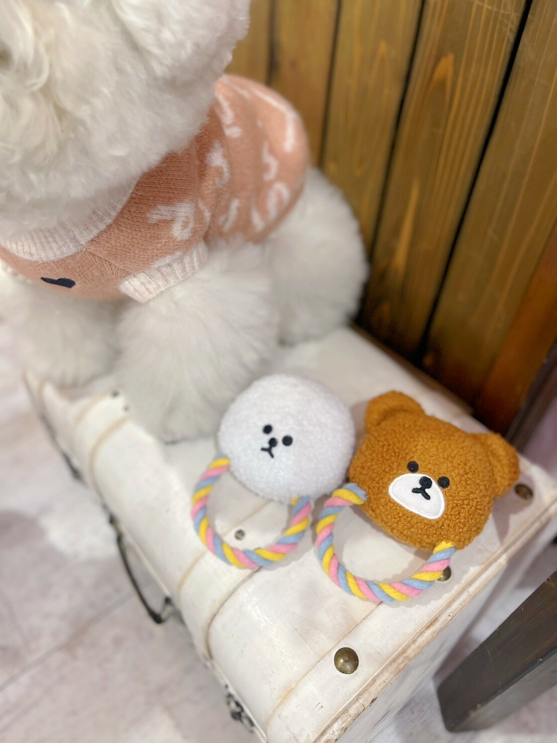 KLMuCCo 家族成員角色 比熊 和 小熊 嗅聞結繩玩具新登場!