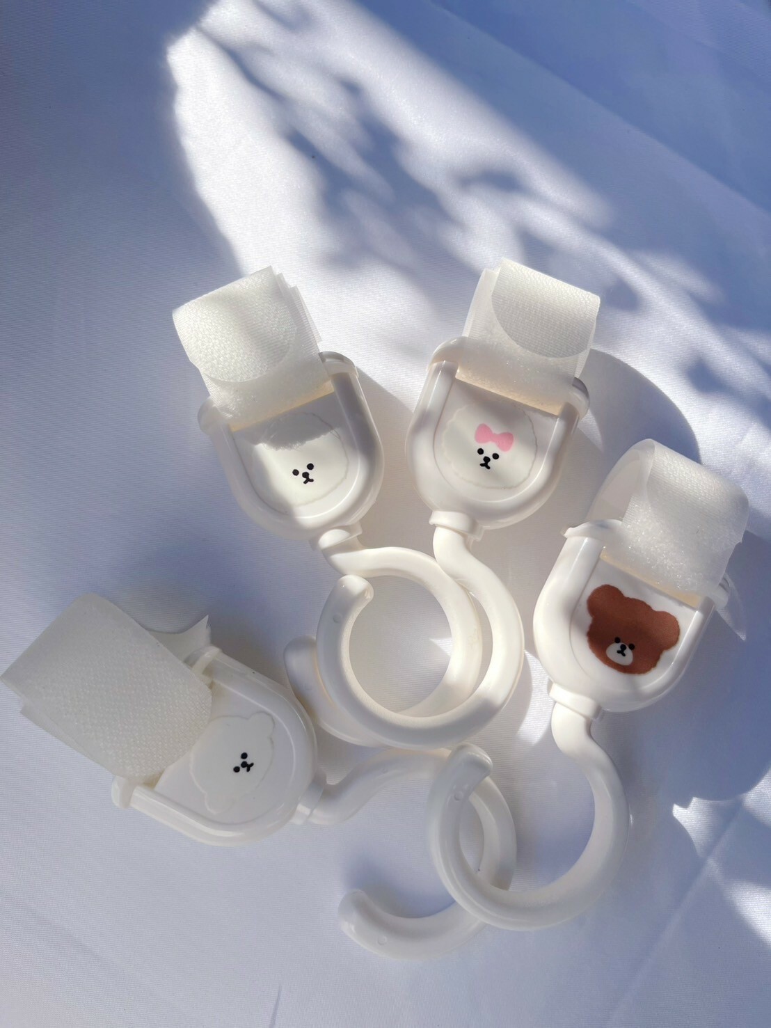 目前圖案有圓頭比熊、蝴蝶結比熊、耳罩比熊和棕色小熊、博美和貴賓六款,掛鉤本體顏色有黑色與白色兩種選擇。