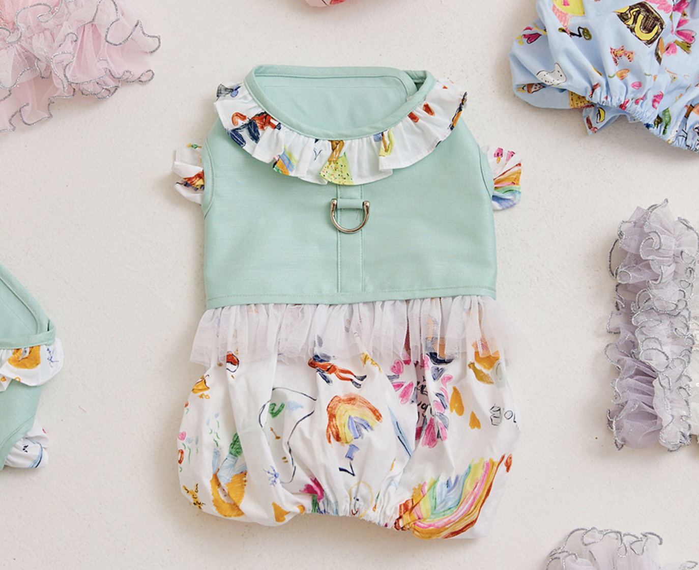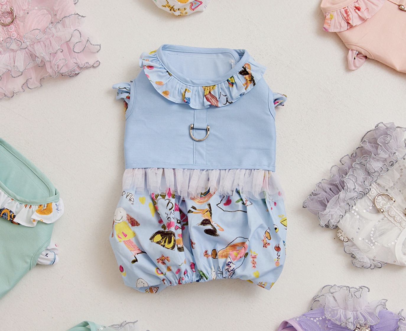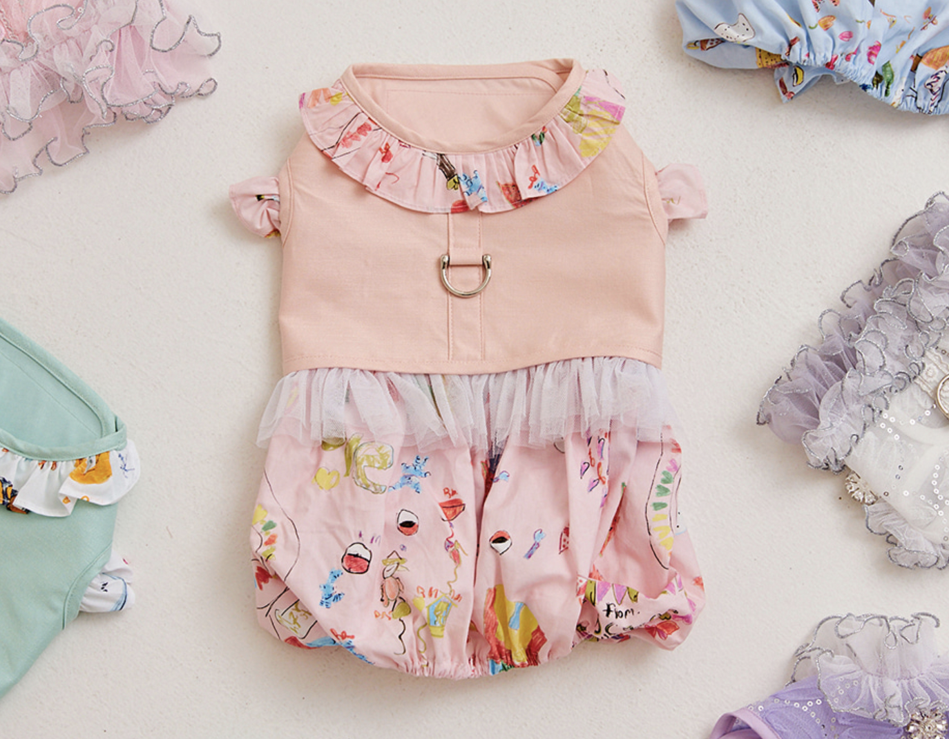 這是一款極具吸引力的外出服和胸背衣,結合了簡約和可愛的印花:)