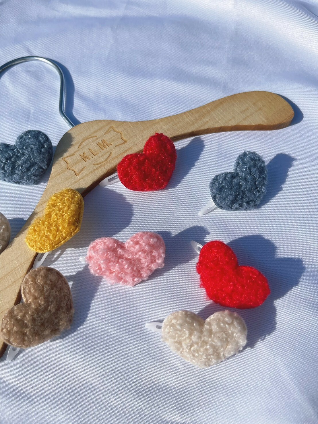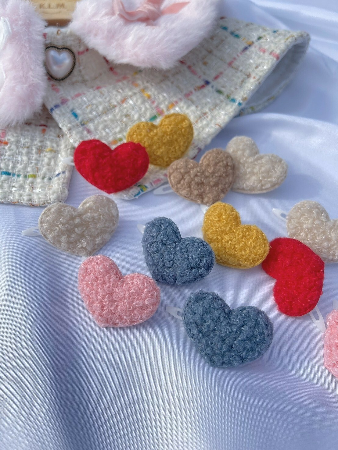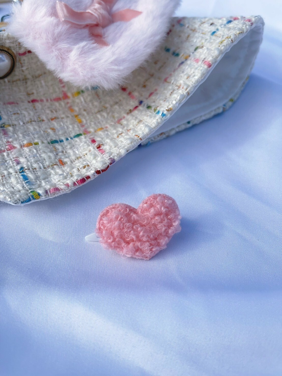 與新款糖果花呢絨毛領巾及胸背完美搭配的心形髮夾♡