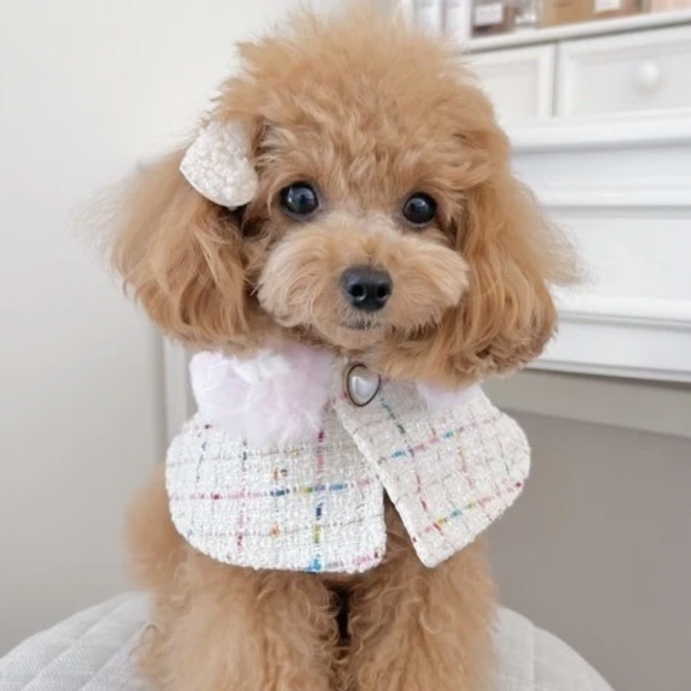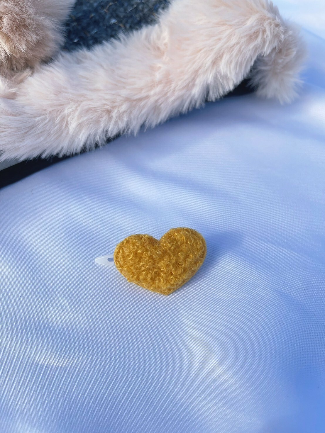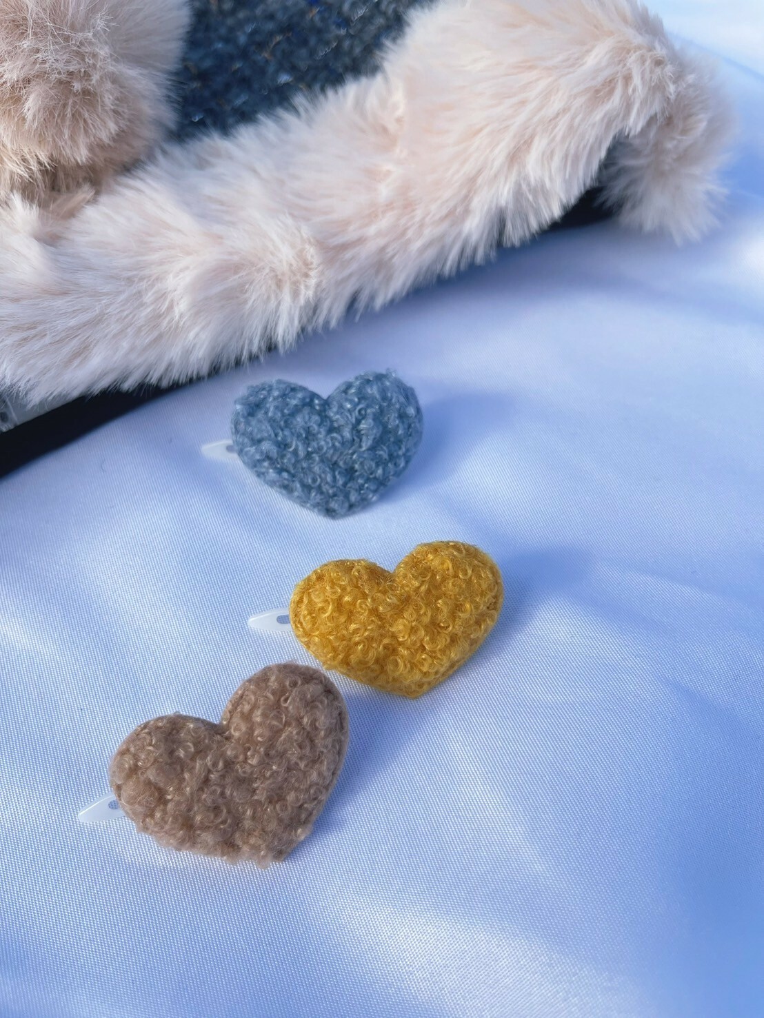 與新款糖果花呢絨毛領巾及胸背完美搭配的心形髮夾♡