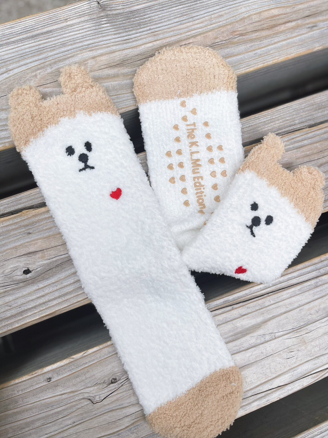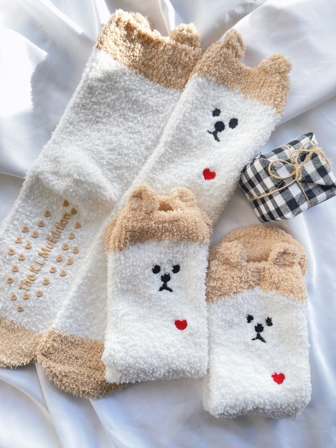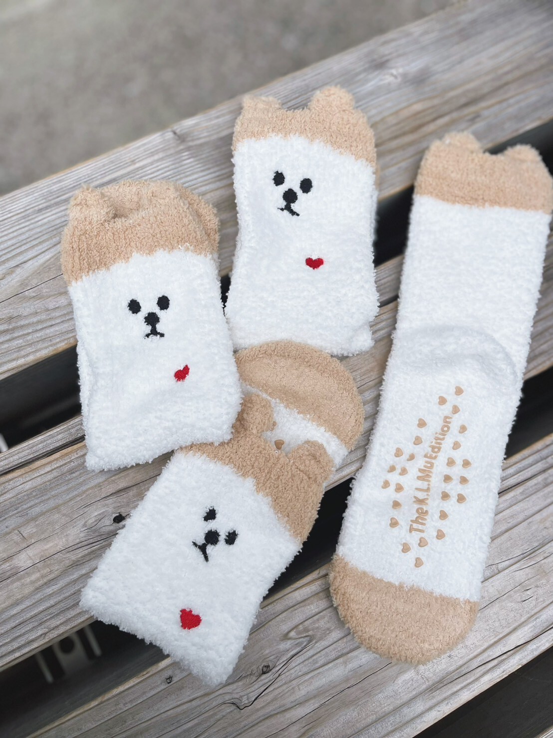 戴著熊耳朵的酷樂母君,現在化身為一雙毛茸茸的襪子啦💛