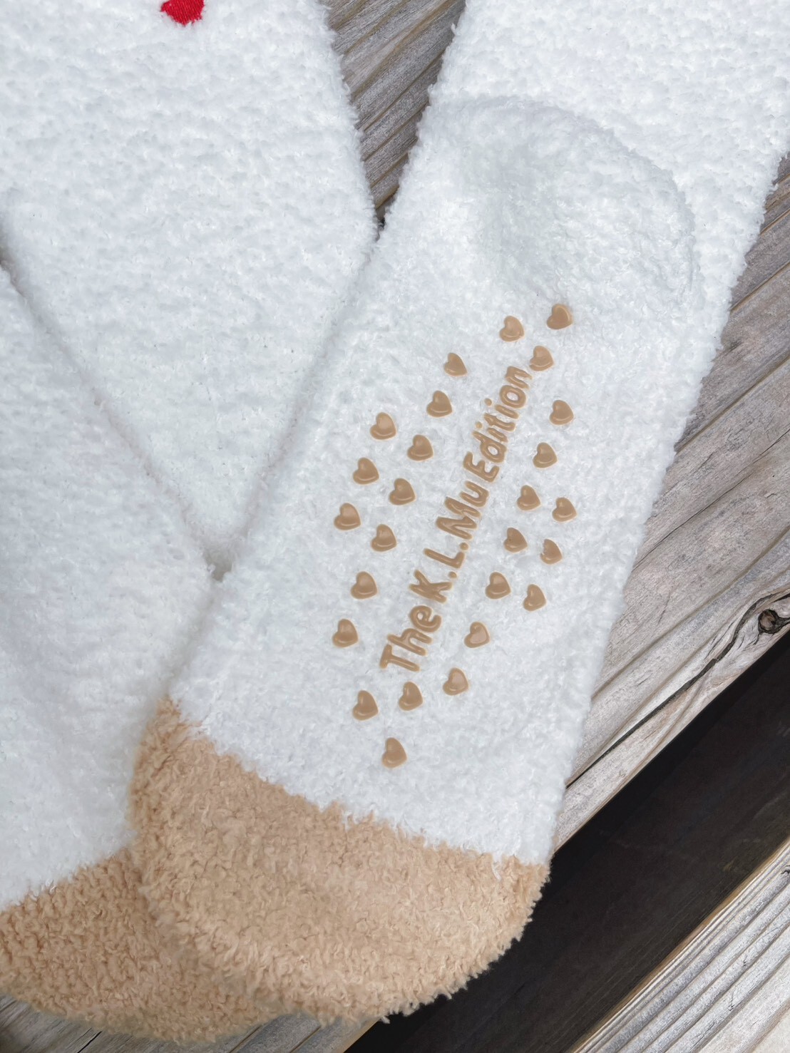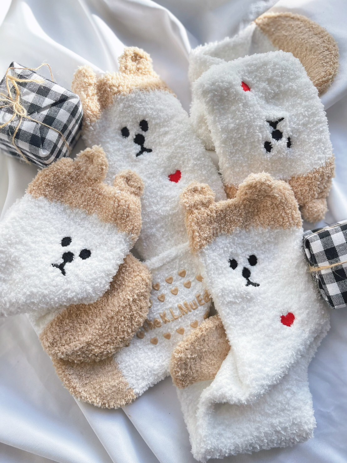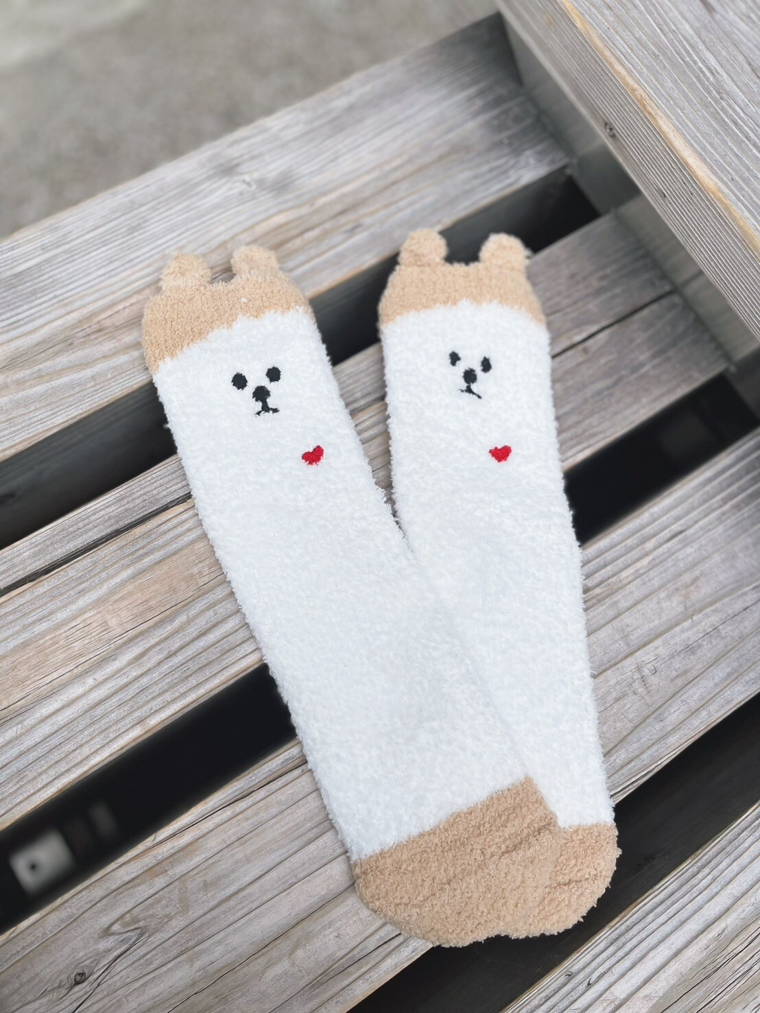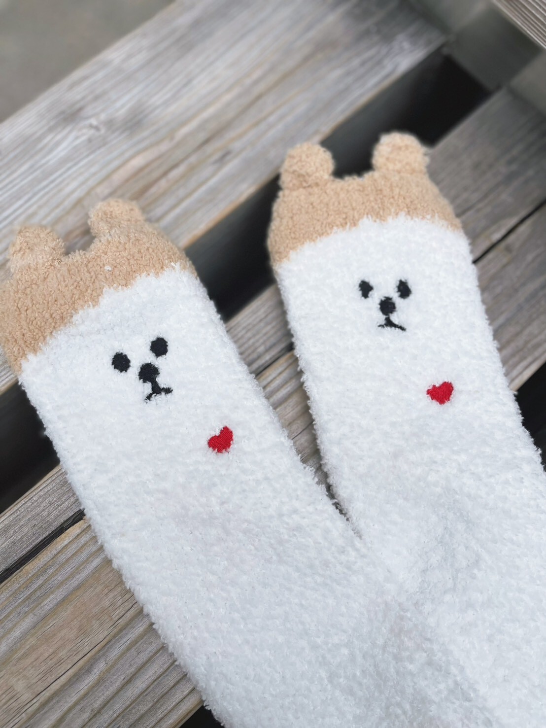 戴著熊耳朵的酷樂母君,現在化身為一雙毛茸茸的襪子啦💛