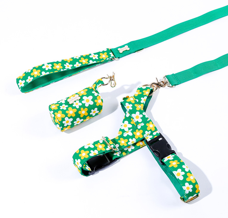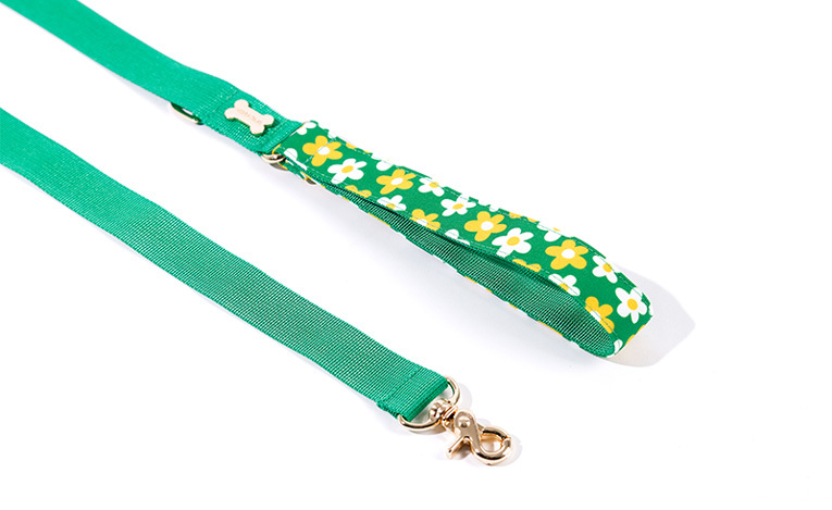 金色金屬扣環提升整體牽繩的質感,搭配成套的胸背更好看