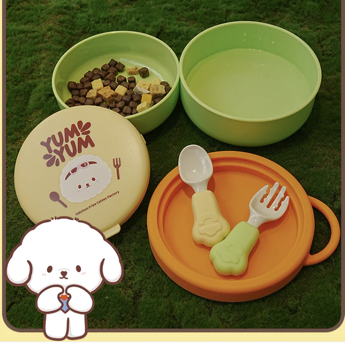 內容: 1*蓋子,1*矽膠盤,1*小碗,1*大碗,1*叉子,1*湯匙